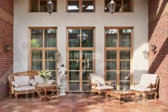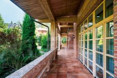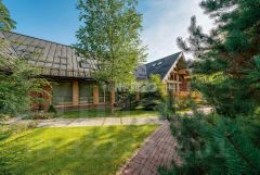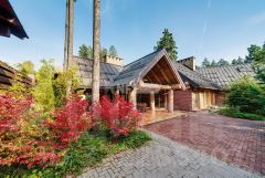 На обширном участке выполнен прекрасный ландшафтный дизайн - настоящий собственный парк, где всегда много солнечного света. Мощёные дорожки извиваются среди лужаек, многочисленных раскидистых деревьев и кустарников. Перед гаражом организована большая площадка для парковки.