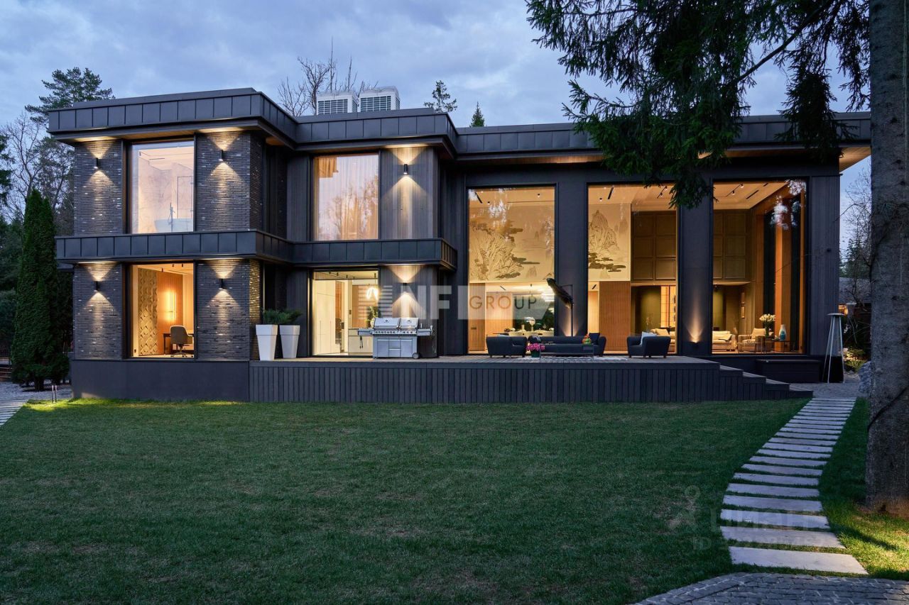 На участке площадью 30 соток — вековые сосны, профессиональный ландшафт, гараж на 4 автомобиля и отдельно стоящий SPA-комплекс 350 кв.м. с бассейном, сауной и просторной гостевой зоной. Эта резиденция — для тех, кто ценит эстетику, масштаб и по-настоящему продуманную загородную жизнь.