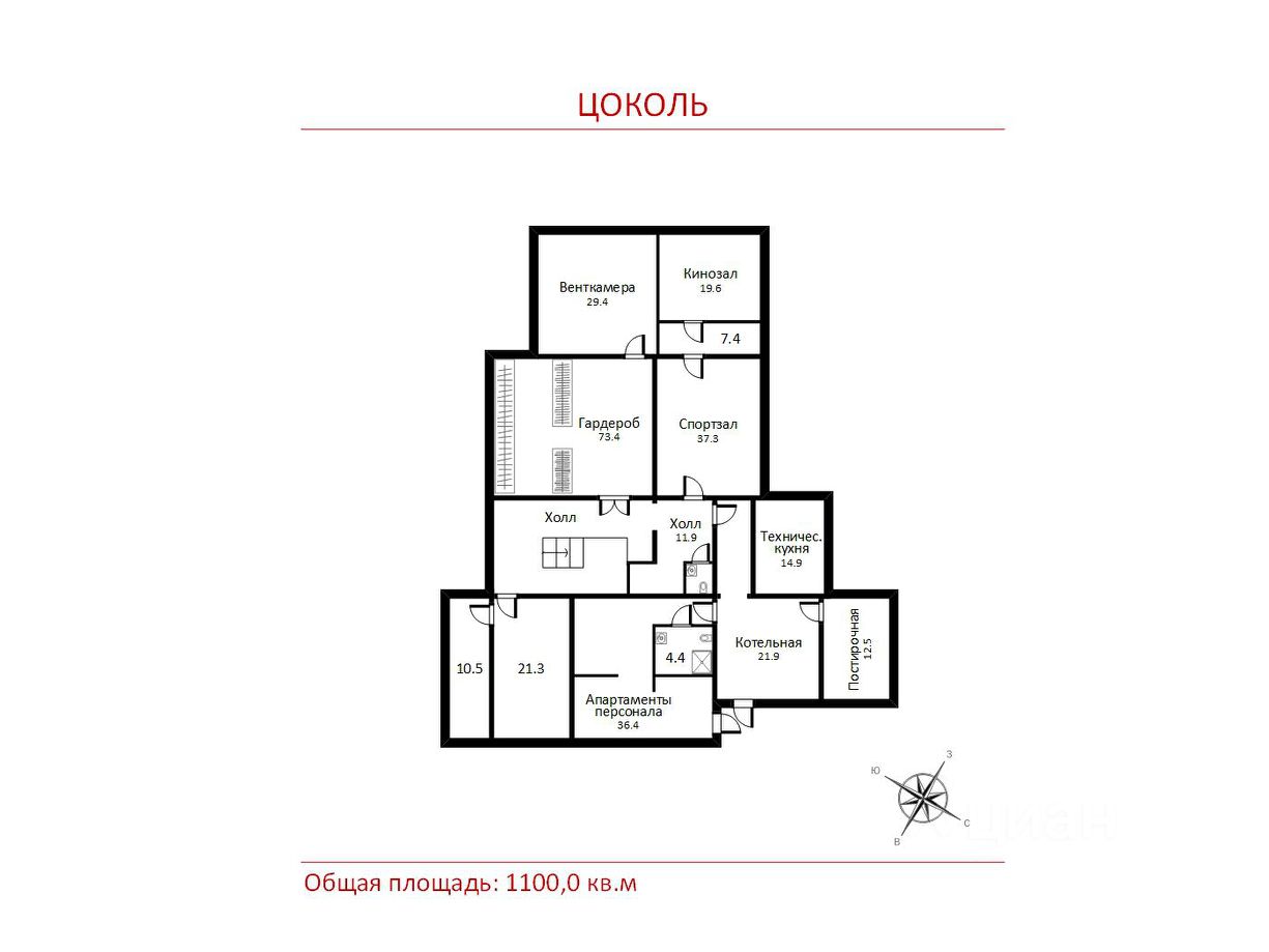 Цоколь: кинозал, с/у, просторная гардеробная, 2 вместительные кладовые, рабочая кухня, постирочная, апартаменты для проживания персонала, включающие в себя кухню и с/у;