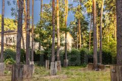 1 этаж: гардеробная, банкетный зал, сцена, 6 с/у, спортзал, черновая кухня, бильярдная;