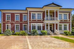 Дом для персонала (с подземным переходом в основной): кухня персонала, 3 спальни и зона отдыха. Отдельно комната охраны. Автомойка. Лифт для автомобилей на подземный паркинг.