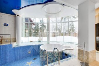 1 этаж : холл, гардеробная, зал с 3-я зонами: каминная зона, зона TV, столовая/кухонная зона; СПА-зона: джакузи, бассейн 8 м, финская сауна, душевая, с/у;