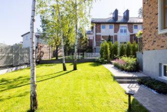 Продуманный ландшафтный дизайн с разнообразными растениями и тщательно спланированным освещением создает особую атмосферу в любое время суток.