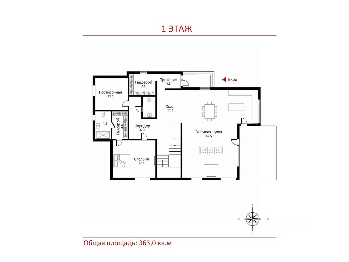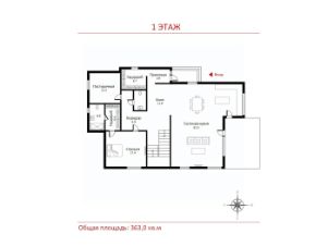 1 этаж: прихожая, гардеробная, постирочная, холл, гостиная-кухня, гостевой су, спальня со своим су и гардеробной.