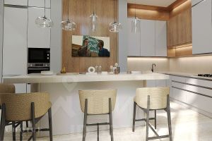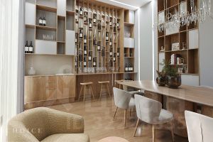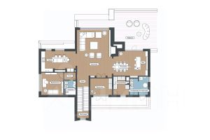 1 этаж: прихожая, гардеробная, санузел, холл, кухня, столовая с выходом на террасу, бар, гостиная с камином, кабинет