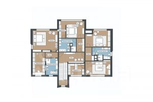 2 этаж: холл, мастер - спальня с санузлом и гардеробной, спальня с гардеробной и санузлом, детская спальня с гардеробной и санузлом, спальня