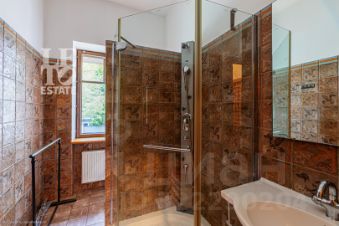Участок 14 соток с ландшафтным дизайном, плодовыми и лесными деревьями, кустарниками, с широким подъездом и гостевой парковкой под навесом. На территории имеется зона барбекю с беседкой, фонтан и игровая зона для детей.