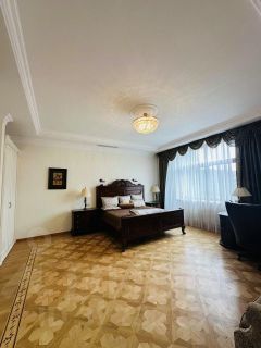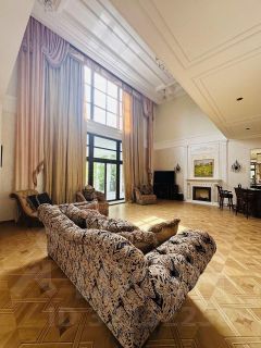 6 спален, 8 санузлов, бассейн (18х8) метров, турецкая баня, сауна, кинозал, спортзал, бильярдная, в цоколе находится рабочая кухня.