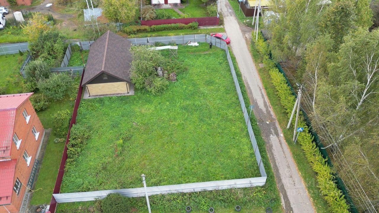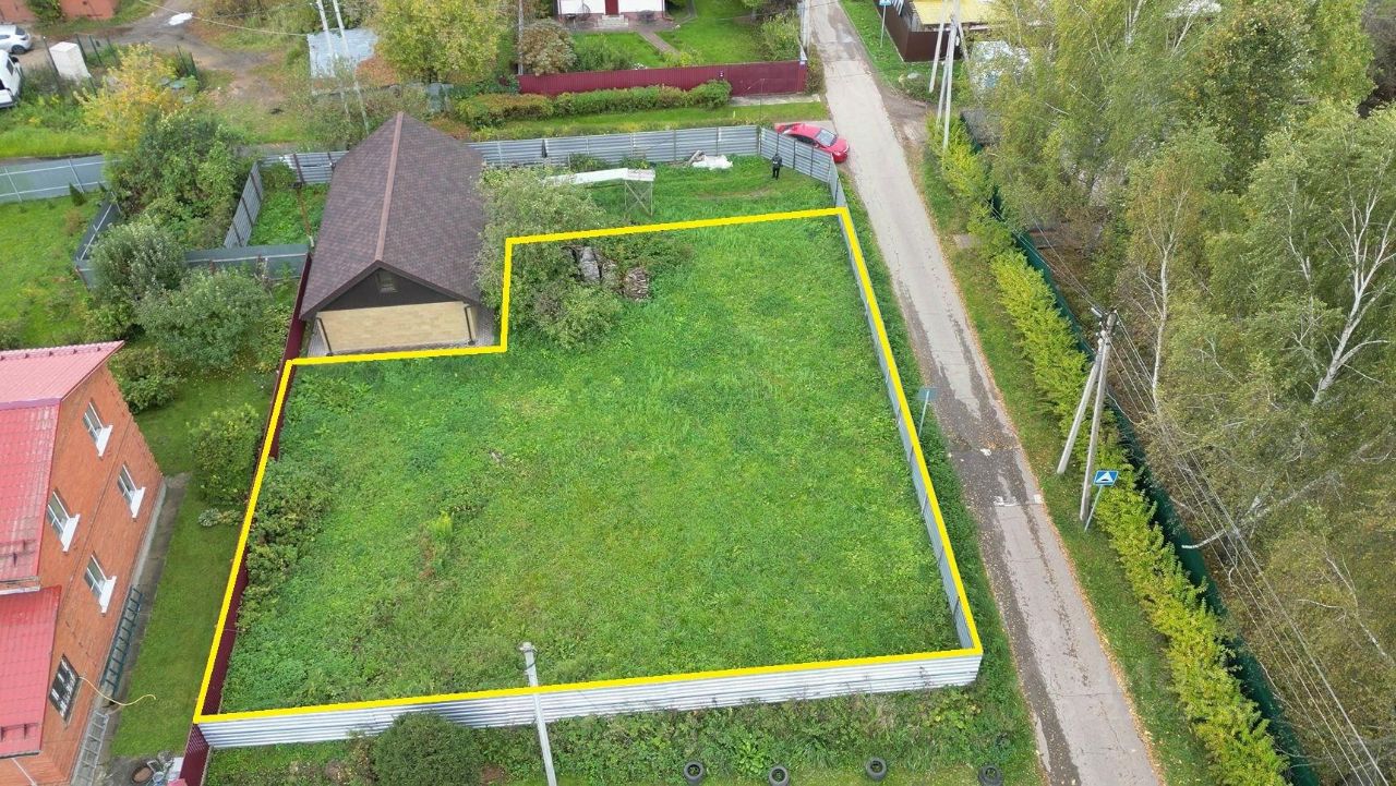 6 соток. Огорожен высоким забором.