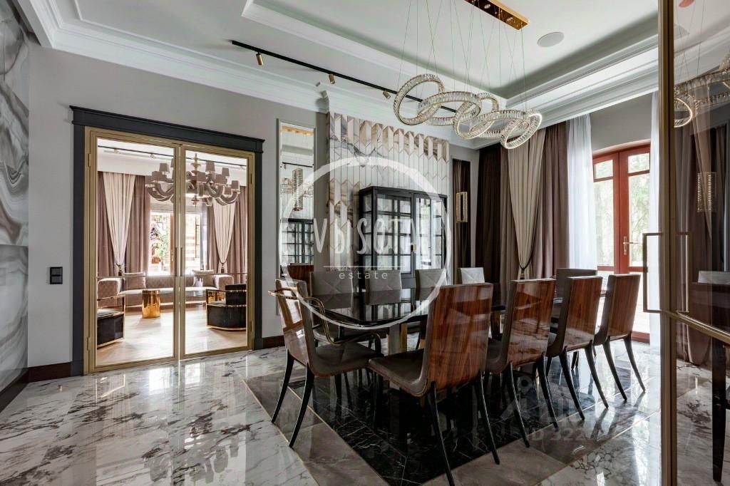 Роскошный и абсолютно новый дом площадью 690 кв.м на лесном участке 28.32 соток, выполненный по проекту Аверон. Светлые тона фасада придают этому особняку особый шарм и теплоту. Дом построен в 3 уровня, по проекту предусмотрено 5 спальных комнат. Открытая терраса с выходом на участок в окружение реликтовых сосен. Гараж расположен в контуре дома на 2 м/м.