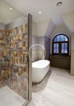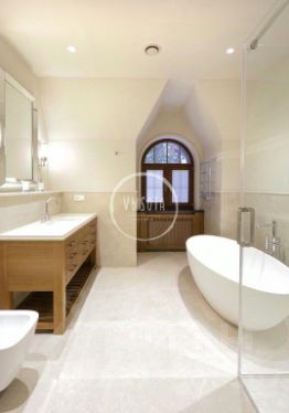 Предлагается к продаже дом выполненный по проекту "Сан Жерма". В доме: гостиная со вторым светом, библиотека, кабинет; котельные в доме и гараже. Отдельно стоящий гараж на 2 авто, на втором этаже квартира для персонала с кухней и двумя спальнями.