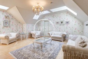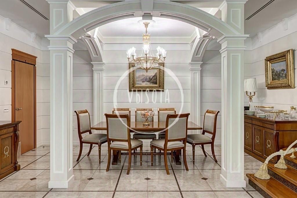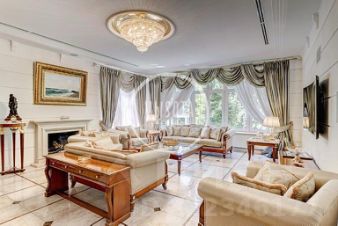 Предлагается к продаже полностью готовый к проживанию дом. В доме 4 уровня: 1 этаж, 2 этаж, мансарда и цоколь. Состав помещений: гостиная, каминная, столовая, 7 спален, кабинет. Бассейн. Лифт. Гараж - в доме, на 2 автомобиля.