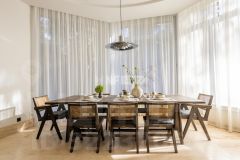 1 этаж: просторный холл, гардеробная, гостевой с/у, каминный зал со столовой зоной и выходом на террасу, зона кухни и бара, спальня, гараж, котельная, постирочная;