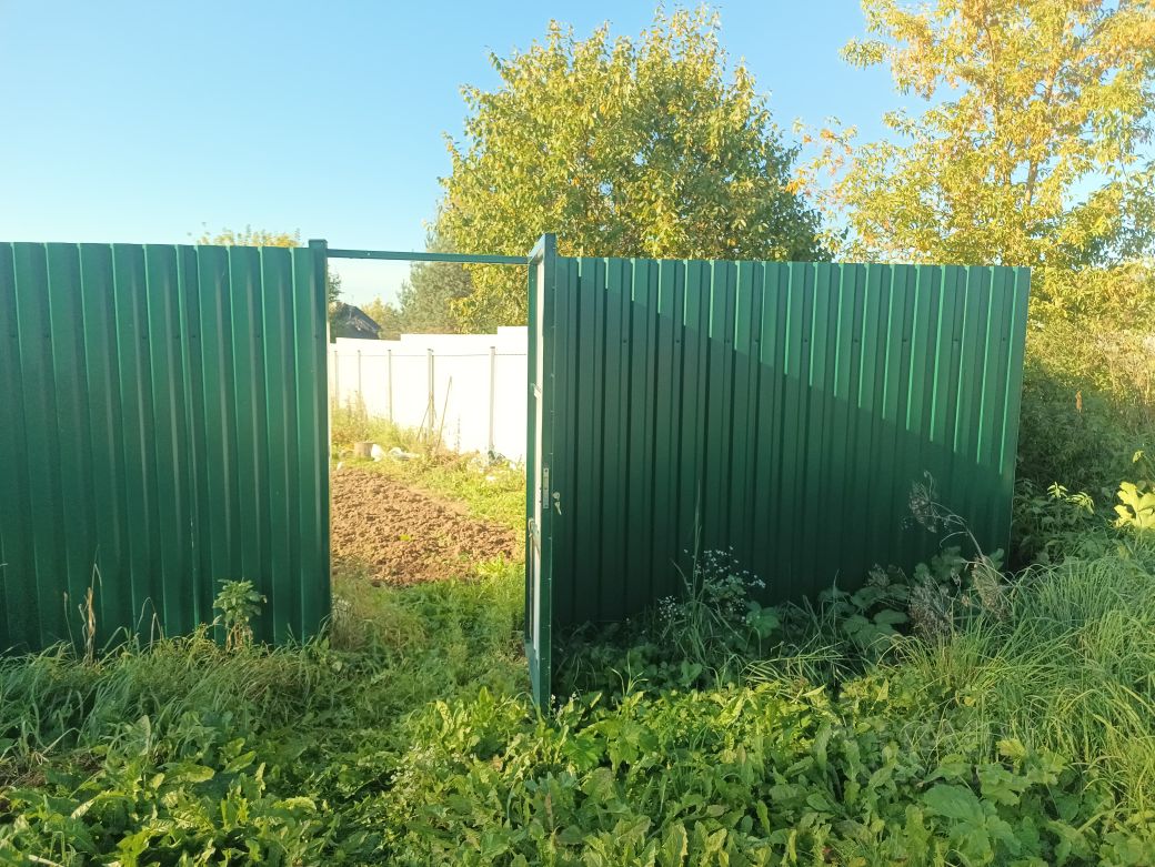 Забор из профнастила, есть ворота.