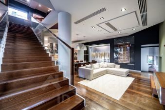 Современный дом в Жуковке, в пешей доступности к сердцу Рублевки! Проект разработало архитектурное бюро Наримана Имамалиева, так же получил первую премию в номинации лучший "Арт проект на Рублевке". При строительстве дома использовались исключительно самые дорогие и качественные материалы, панорамное остекление от компании Schueco- а это качество и красота, на все времена. В центральной части первого этажа расположен великолепный камин из персидского травертина медового оттенка, все полы в доме из Африканского Венге и керамики. Так же в доме много ценных полотен работ известного художника Вугара Мурадова, интерьерные ковры из натурального шелка, специально заказаны для этого дома в Шамахи, Азербайджан. Все эти предметы интерьера представляют не малую ценность как предметы искусства, и остаются в подарок новому обладателю дома.