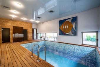 Этаж 1: Холл, гостиная, каминная комната, санузел, обеденная, кухня, бассейн, санузел, хамам, сауна.