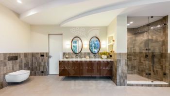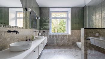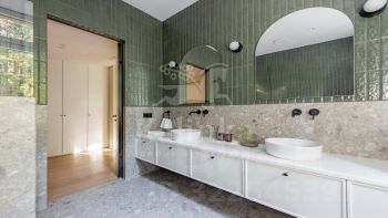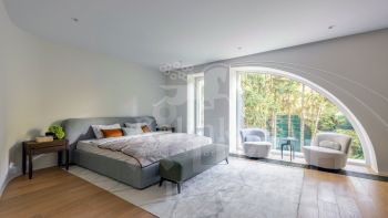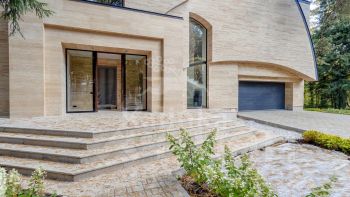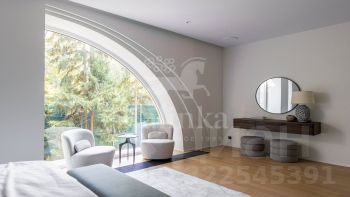 Это уникальный архитектурный проект, новаторски развивающий современные мировые тенденции в области архитектуры. Объем, свет, форма и пространство — вот ключевые слова, характеризующие тщательно продуманные конструктивные решения, учитывающие эргономику человека XXI века. Фасад дома отделан натуральным камнем. Панорамное остекление. Просторные светлые помещения. Лифт. Открытая терраса. Немецкие окна females. Установлена система приточной вентиляции и очистка воды, два немецких котла. 6 спален с с/у и гардеробными, 2 кухни. Гараж на 2 м/м и парковка на 3 м/м перед домом.