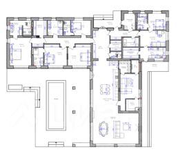 В доме 5 спален ( из них гостевой блок с кухней , спальней , гостиной и су , 4 спальни с су и гардеробной ) Зона спа с финской сауной. гостиная - кухня 100 метров и потолками 4 метра с выходом к подогреваемому бассейну 9*3