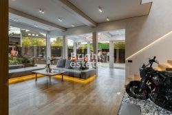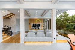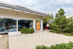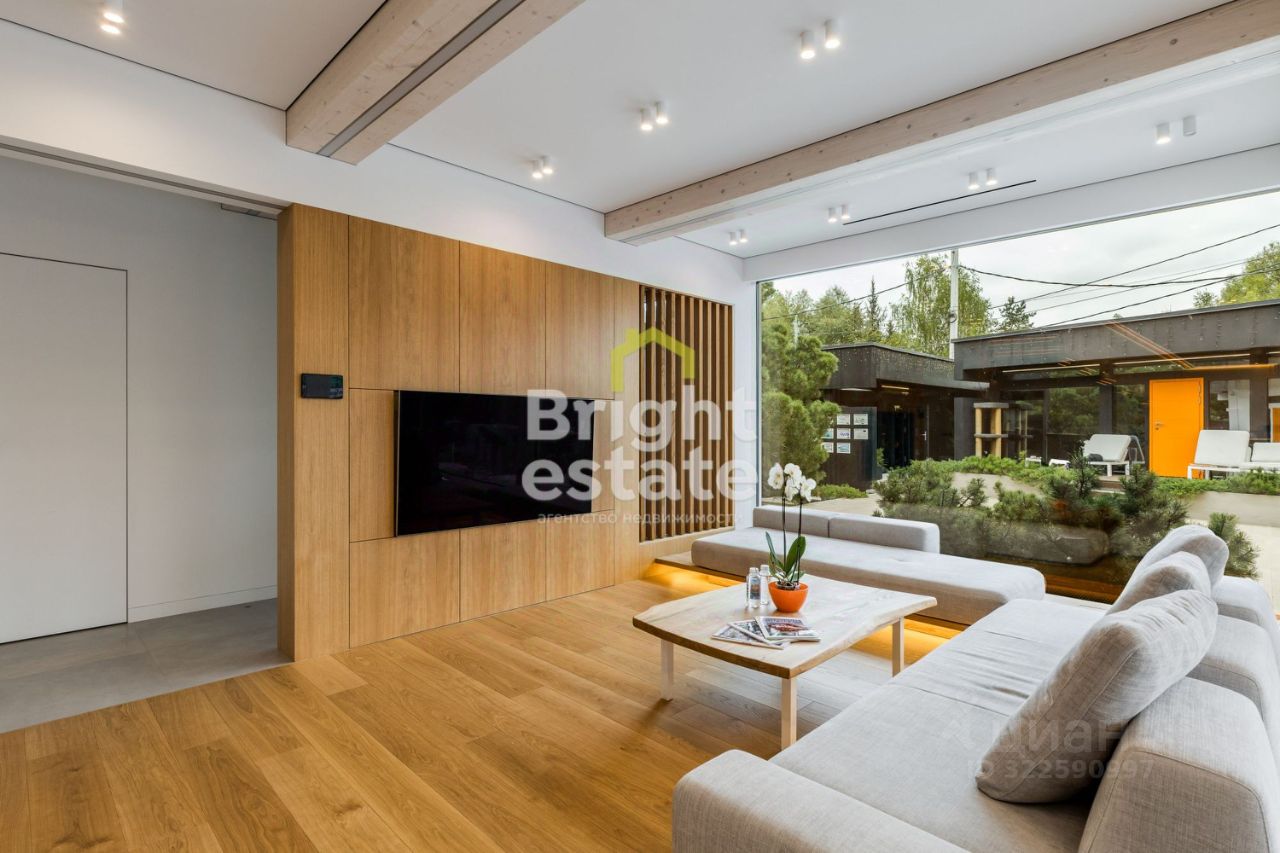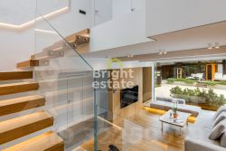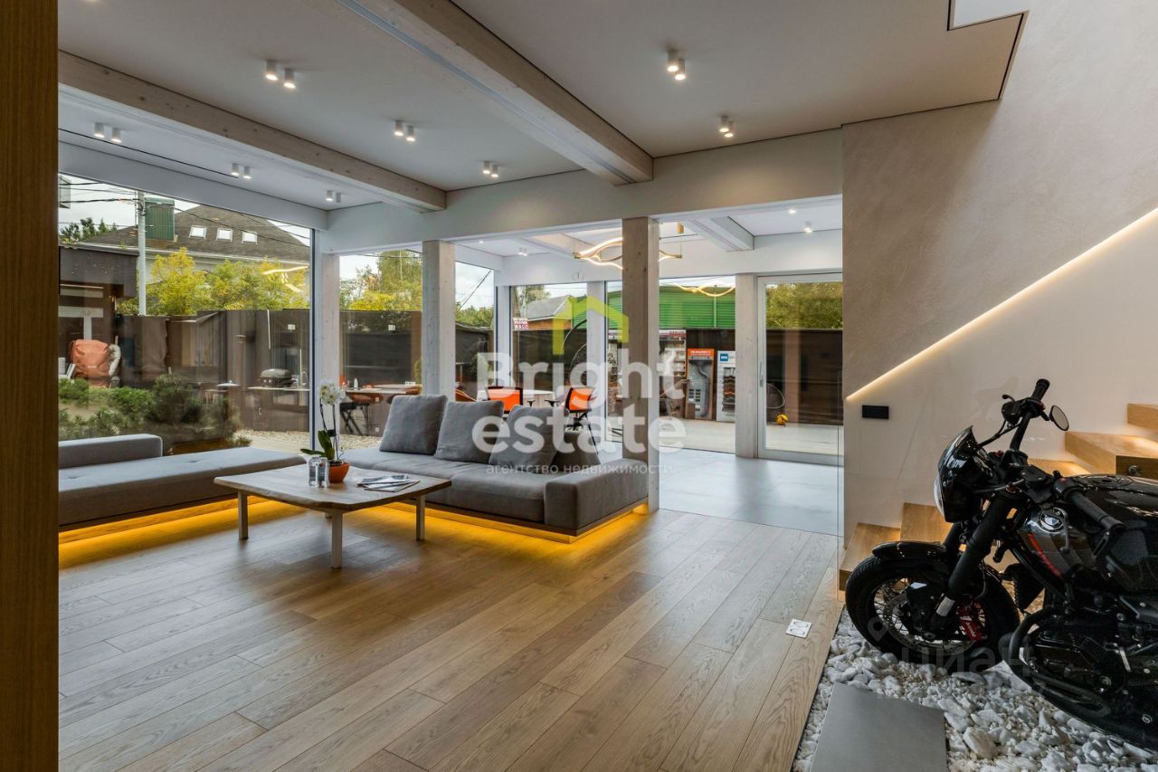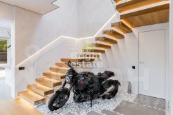 Дом оснащён системой "умный дом" — управление освещением, климатом, шторами и звуком доступно с одного касания. Энергоэффективность достигается за счёт 30 солнечных панелей и продуманной системы вентиляции с рекуперацией тепла.