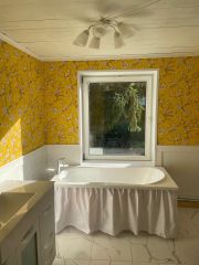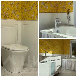 В санузле для обогрева воды новый бойлер на 80 литров, унитаз с микролифтом, ванна у панорамного окна.