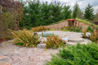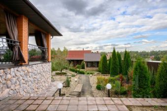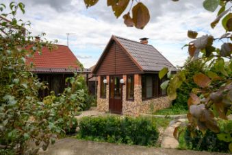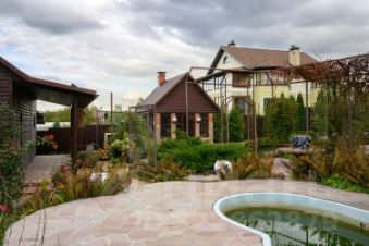 Каменный коттедж для круглогодичного проживания общей площадью 285 кв.м с террасой, баней, бассейном, гаражом на живописном участке 15 соток.