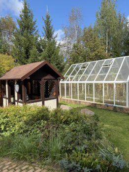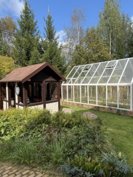 Участок площадью 18 соток обустроен по первоклассному ландшафтному дизайну. Уместилось и своё футбольное поле с автополивом и Беседка с мангалом., и детская площадка и Теплица с автоматическим проветриванием . и Просторный СПА-комплекс с сауной и бассейном.