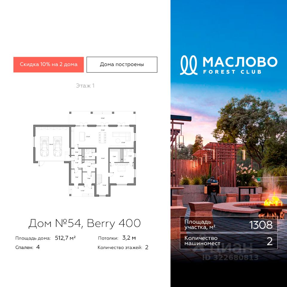 В закрытом посёлке премиум-класса "Маслово Forest Club" напрямую от девелопера ГК "Галс-Девелопмент" представлен дом общей площадью 519,5 м².