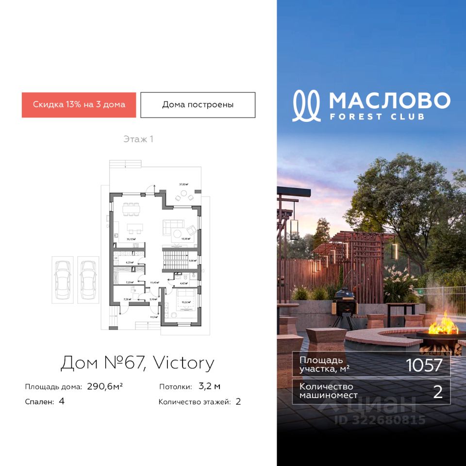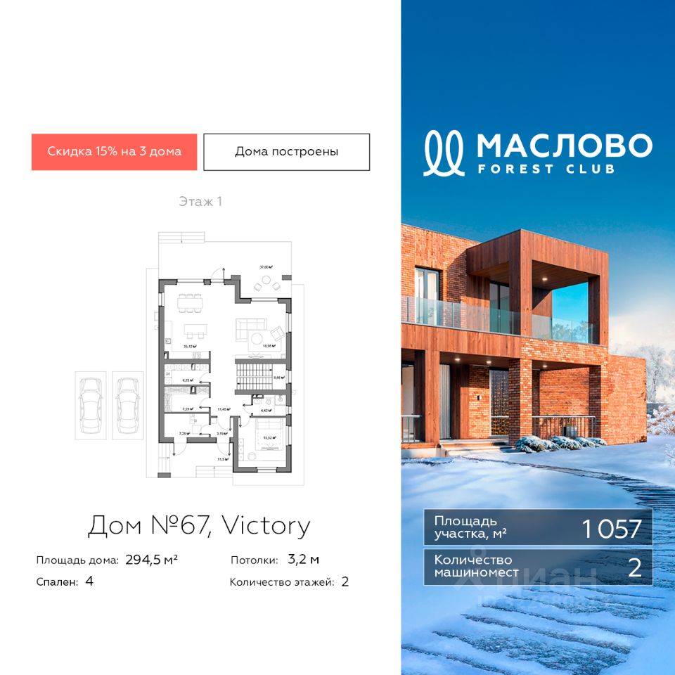 В закрытом посёлке премиум-класса "Маслово Forest Club" напрямую от девелопера ГК "Галс-Девелопмент" представлен дом общей площадью 290,6 м².