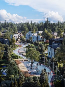 На площади 29 га запланирована зелёная пешеходная аллея с велодорожками и площадками для отдыха. У главного входа предусмотрено открытое пространство для собственных мероприятий жителей, рядом — игровые площадки и оборудованные зоны для воркаута. Все точки притяжения объединит центральная аллея протяжённостью 600 м.