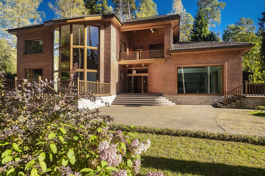 - Основной дом из кирпича - 3 этажа (с цоколем) и мансардный этаж общей площадью 955,5 квм.