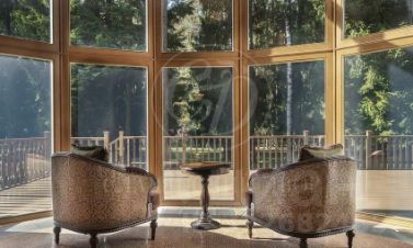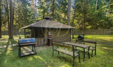 Уникальная загородная резиденция на Николиной горе с собственной парковой зоной, на просторном участке в окружении вековых сосен в охраняемом коттеджном поселке. Территория оснащена системами безопасности: видеонаблюдение и охранная сигнализация. Выполнен ландшафтный дизайн, уличное освещение, проложены мощёные дорожки.