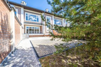 Продам светлый таунхаус 354 м2 c новым ремонтом, расположенный на участке 6,5 сот., в коттеджном поселке Азарово. на первом этаже гостиная с камином и с выходом на террасу и собственный зеленый участок, кухня также с выходом на вторую террасу и зеленый участок, прихожая, гардеробная, гостевой санузел. На второй этаж ведет широкая мраморная лестница, там расположены три спальни, каждая со своей гардеробной и санузлом, есть общий балкон. В мастер- спальне две гардеробные, в санузле установлена ванна. В таунхаус можно попасть с подземного паркинга, где предусмотрено два парковочных места, которые входят в стоимость. На уровне паркинга есть две кладовые комнаты.