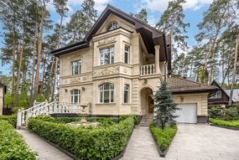 Роскошный дом площадью 400 кв.м. в элегантном классическом стиле расположен на живописном лесном участке размером 12 соток.
