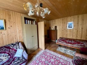 Дом жилой, площадью 25.7 кв. М, в доме электричество. По планировке две изолированные комнаты, кухня, летняя терраса. Дом деревянный, из бревна, утеплен и обшит вагонкой. Кадастровый номер 50:20:0000000:11754.