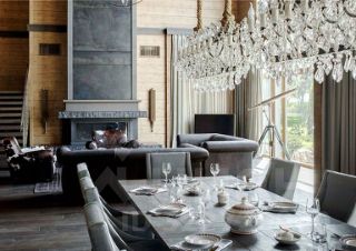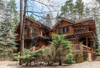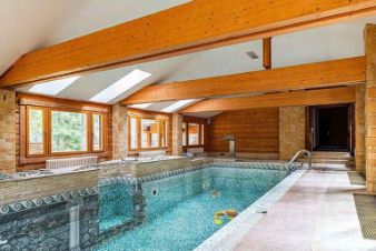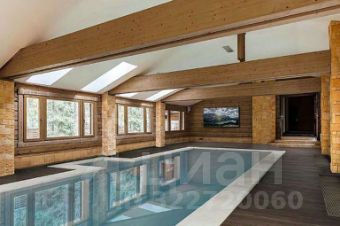 ID 9647. Дом площадью 1 175,7 м² выполнен из натурального соснового бруса с применением высококачественных технологий HONKA по индивидуальному проекту. В доме высокие потолки, большие окна и дровяной камин с открытой топкой. Планировочное решение включает: двухсветную гостиную, кухню, 4 спальни, 5 ванных комнат, кабинет, тренажерный зал, зону SPA с бассейном, кинозал и сервисные помещения.