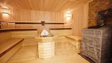 На первом этаже расположены гостиная, холл, терраса, кухня, гардеробная, санузел, сауна, помещение для персонала, гараж и котельная.