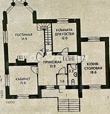 Первый этаж: освещенная гостиная с эркером и камином, который наполняет помещение атмосферой уюта и придает ему нотки роскоши. Прямой выход в сад и зону барбекю. Полностью укомплектованная мебелью и оборудованием кухня-столовая, комната для гостей, рабочий кабинет-библиотека, санузел, просторный холл.