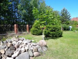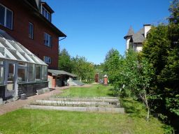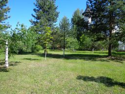 На ухоженном участке 12 соток (факт. 17) посажены садовые деревья и кусты, пострижен газон, выложены дорожки, проведено освещение.