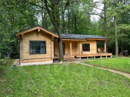 На участке уже возвели небольшую современную баню из клееного бруса с гостевым блоком террасами и панорамным остеклением, так же есть отдельное строение для персонала, хранения и хоз. Нужд., отдельно расположена котельная.