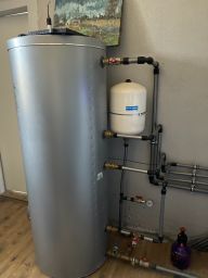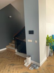 2 уровень: холл-прихожая, гардеробная комната, котельная (современный и экономичный конденсационный котёл от немецкого производителя Buderus GB162 v2/70кв., автоматическое управление температурой во всем доме благодаря продвинутой, современной онлайн системе управления Bosch Buderus Logomatic 5000, бойлер на 300 л. нержавейка Wiessmann Vitocell 300-V), с/у с душем - водяные тёплые полы и радиаторы, пол керамогранит.
