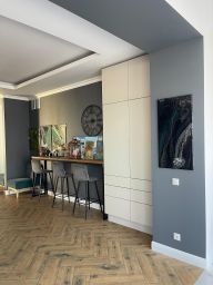 3 уровень: зимний сад (второй свет - высота потолка 6м), кинотеатр с биокамином переходящий в кухню (вся мебель и техника встроенная 2020г., духовка, свч печь, посудомойка от немецкого производителя Bosch, холодильники 2шт. Японского производства Samsung, встроенный диспенсер 750Вт в кухонной раковине), комната для отдыха или работы с отличным видом из окна на поселок - водяные тёплые полы и радиаторы, пол керамогранит.