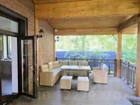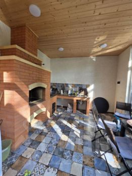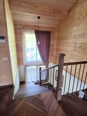Первый этаж газoбетон, втopой этaж из дepeвa - бpус. На 1 этаже - кухня, гостиная, гостевая спальня, санузел, гардеробная, бойлерная, постирочная.
