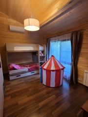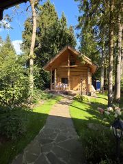 Баня : из оцилиндрованного бревна , печь с камнями на дровах, зона отдыха с кухней, душ и туалет. на 2 этаже спальня.