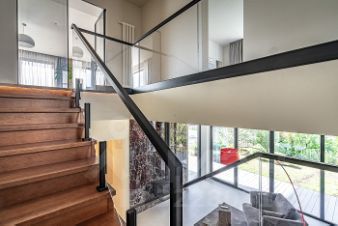 - Изюминкой дома являются раздвижные оконные порталы в гостиной и на кухне, а также стеклянные эркеры (Oriel) в гостевых спальнях.