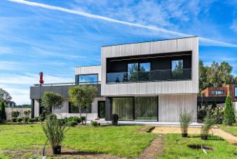 - В отделке фасада использованы отделочные материалы из натуральной древесины - лиственницы, установлена архитектурная подсветка.