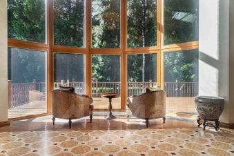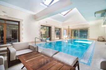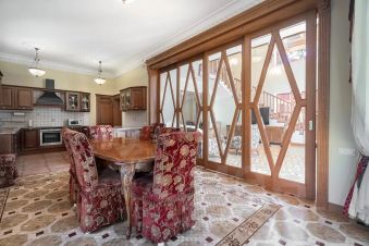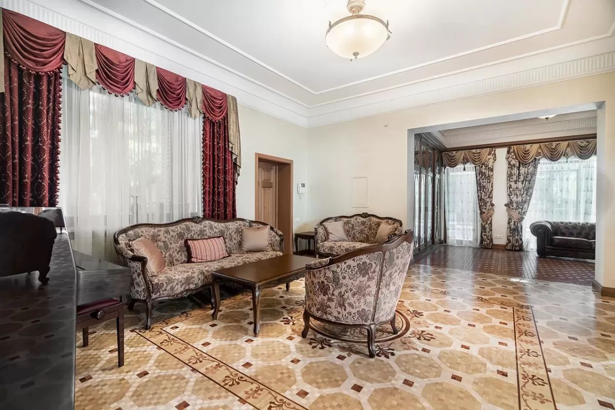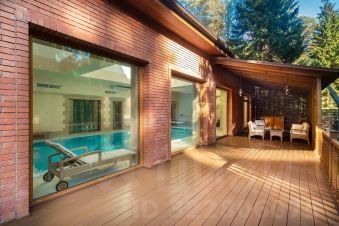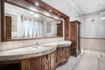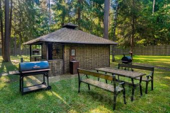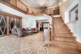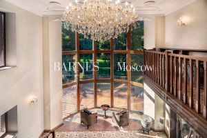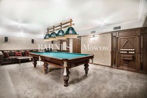 Дом расположен в охраняемом коттеджном поселке д. Маслово (Николина Гора)Общая площадь участка 2.2897 га, в т.ч.: в собственности 0.2572 га, в аренде от ЛесХоза 2.0325 гаНа участке имеются:Основной дом из кирпича - 3 этажа (с цоколем) и мансардный этаж общей площадью955,5 квм.Гараж деревянное каркасное здание в 2 этажа, общей площадью 155 квм (на 2м этаже спортзал и блок для персонала)Дом для охраны; Шашлычный домикПрофессиональный теннисный корт; Открытая стоянка на 15 м/м; Уличная спортивная площадкаДом находится на лесном участке, выполнен ландшафтный дизайн. Территория участка ровная, с дренажем, ливневой канализацией.Основной дом в 3 этажа (с цокольным этажом) и мансардным этажом общей площадью 955,5кв.м:1й этаж: прихожая, холл, гостиная с эркером (второй свет), кухня-столовая, кабинет, с/у,СПА зона с бассейном и банным комплексом, террасы2й этаж: 3 спальни, 2 с/у, гардеробная, балконЦокольный этаж: бильярдная, винный погреб, кинозал, гардеробная, кладовая, с/у,постирочное и гладильное помещение, котельная, прочие технические помещения.Мансардный этаж: библиотека, блок для персонала с 1й спальней и с/у.В доме установлены системы безопасности (пожарная, охранная сигнализация), системаприточно-вытяжной вентиляции с увлажнением, кондиционирование.Гараж деревянное каркасное здание в 2 этажа, общей площадью 155 кв.м:1й этаж: гараж на 2 м/м с возможностью мойки, система хранения, зарядка электрокара.Котельная, помещение для хранения спорт. инвентаря.2й этаж: в одной части - спортзал с раздельными санузлом и душевой; в другой части кухня-гостиная, спальня с двумя кроватями и санузел.В здании установлены системы безопасности (пожарная, охранная сигнализация), система приточно-вытяжной вентиляции.