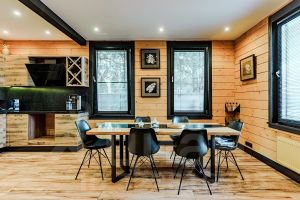 1й этаж: Прихожая, кухня с обеденной зоной, гостевой с/у, гостиная, мастер спальня.