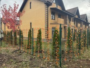 На земельном участке: с внешней стороны входной группы: газон, парковочное место на 2(Две) машины перед тауном, с внутренней стороны отдельный выход во двор, внутренний дворик, своя территория для зоны барбекю, детской площадки, видового мини-сада, возможность оборудования зоны приема гостей, газон, деревья: береза, дуб, клен, можно огораживать забором.