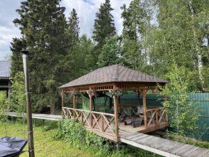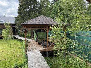 Уникальное место в 40 минутах езды на автомобиле от Москва-Сити! Невероятная тишина на опушке огромного леса! Престижный поселок. Два смежных участка правильной формы 12 и 19 соток. Деревянный двухэтажный дом (362,6м) с огромными террасами, баней (53м) и беседкой (25м). Все строения соединены "летящим" мостом. Газовый котел Buderus GB172i-42 (+дистанционный пульт управления в доме), водонагреватель косвенного нагрева ACV Comfort-160, скважина (с гидробаком на 100 литров) и система фильтрации воды вынесены в отдельно стоящую котельную (11,3м). Все звуки, риски и опасности газа и воды надежно изолированы от жилых помещений. Электричество 15+15 кВт, коммуникация и стабилизаторы в отдельном боксе. Магистральный газ. Септик "Астра-5". Площадка для каркасного бассейна. Вольер и просторный выгул для собак. На участке 97 (!!!) красивых молодых сосен.