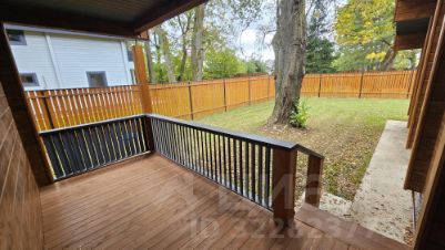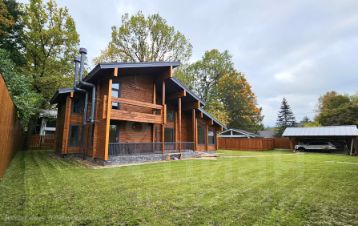 Участок с хорошим газоном, лесными деревьями. НАВЕС на 2 автомобиля.